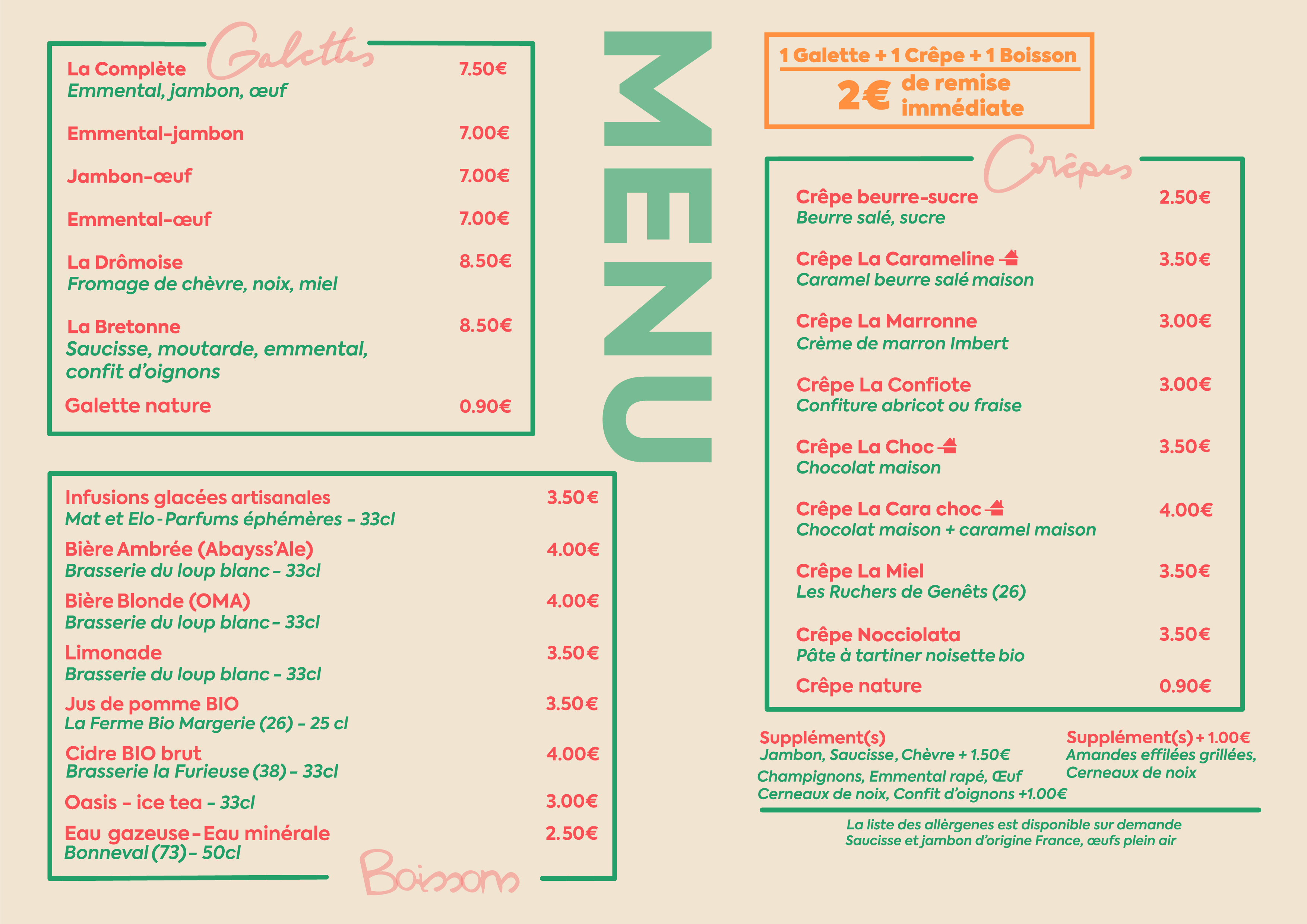 Galettes croustillantes, crêpes fondantes, ingrédients locaux … Tout ça dans une ambiance chaleureuse et mobile.